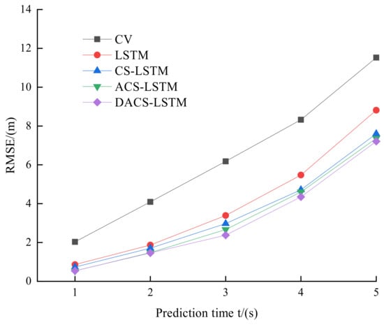 Each model uses RMSE as the evaluation index, and the model inputs 2 s of historical trajectory data and outputs the prediction error results for the next 5 s, as shown in the Table 1: