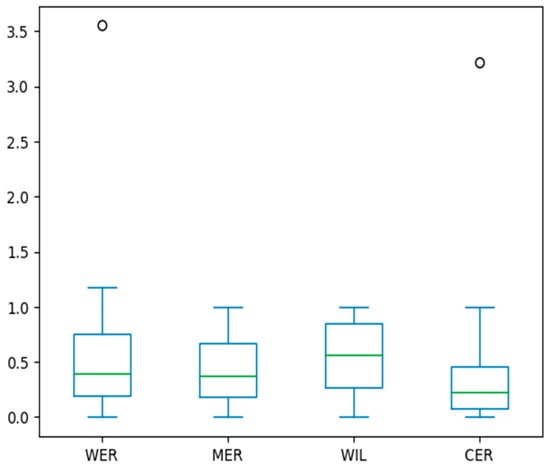 - Wikipedia Page Word Error Rate. Available online: https://en.wikipedia.org/wiki/Word_error_rate (accessed on 7 May 2023).