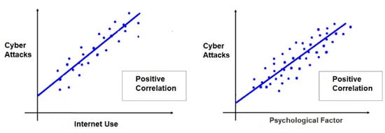 (Left) correlation between Internet demand and cyberattacks; (right) correlation between psychological factors and cyberattacks.
