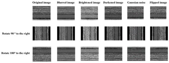 In this section, firstly, we used a data-enhanced method to enlarge the dataset to solve the problem of insufficient training samples in the malware dataset. This problem causes overfitting of the training results. The experiment handles various operations on a single original image, such as rotation, flipping, brightening, darkening and adding Gaussian noise. By combining these operating methods, a single original image is expanded into seventeen images, thereby supporting deep learning training. This experiment solves the problem of data imbalance and the problem of insufficient sample bases through this method of expanding the entire dataset. Some of the results of the data-enhanced method are shown in Figure 2.