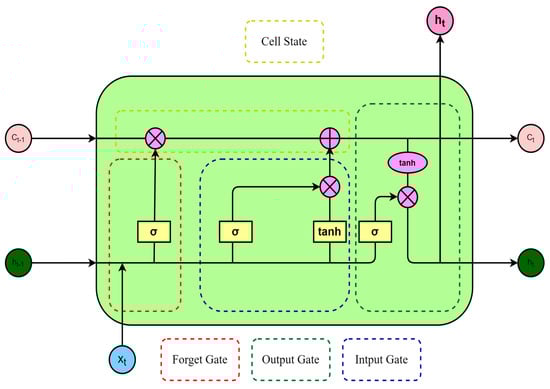 As part of the feature extraction component in this experiment, Equations (1)–(6) mainly explain the working principles of forget gates, input gates, and output gates in the LSTM model. These three gating mechanisms are essential parts of the regular operation of the LSTM model.