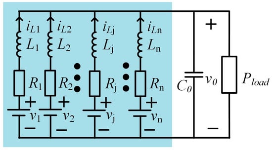 Based on (10), the equivalent model of n batteries and cascaded DC–DC converters in parallel connections are derived and is shown in Figure 8.
