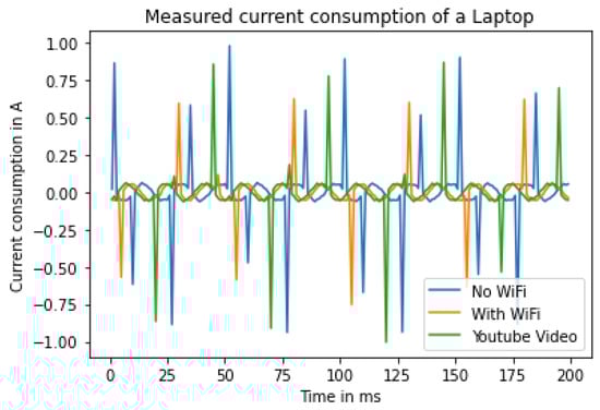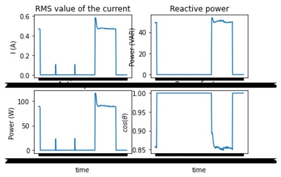 In residential settings, there are two different types of electric loads: linear and nonlinear. The present smart plug model is focused on linear loads (such as heaters, fans, air conditioners, and refrigerators). The formulas for the voltage and current in the AC domain are provided by Equations (2) and (3) []: