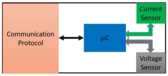 The schematic diagram of the smart plug is shown in Figure 6. The components of the diagram include a communication unit for sharing data and control signals with the smart meter, a microcontroller for managing and controlling the AC appliance, sensors for measuring the current and voltage, and a relay for turning the appliance on and off.