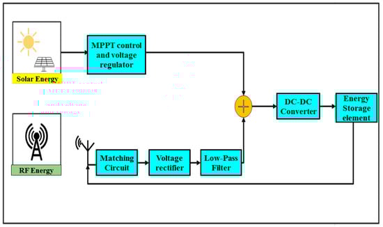 - Jadhav, S.B.; Lambor, S.M. Hybrid Solar and Radio Frequency (RF) Energy Harvesting. In Proceedings of the IEEE International Conference on Power, Control, Signals and Instrumentation Engineering (ICPCSI), Chennai, India, 21–22 September 2017. [Google Scholar]