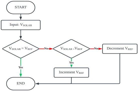 The process of measuring power, comparing it to the operating voltage, and changing it is performed regularly to track and optimize the operating point continually. The controller performs fine-tuned modifications to keep the system at the MPP while accounting for ambient variables and sun irradiation changes. The MPPT controller optimizes the power output of the PV system by altering the operating voltage depending on power measurements. Figure 9 demonstrates the flowchart of the proposed maximum power point tracking algorithm, which is the fractional open voltage (FOV) algorithm which is inbuilt in the IP5306 IC’s switch buck charging and boosting capabilities. Integrated power-path management and multiple protections including short-circuit protection are provided in this IC. The IP5306 is a fully integrated multi-function power management SoC. The system combines a boost converter, a management system for charging a Li-ion battery, and a controller that indicates the battery’s state of charge.