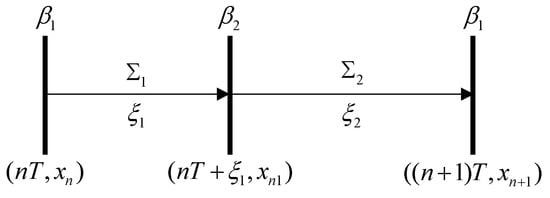 The iterative relationship of the IPIFR-WPT system in nth operation cycle is shown in Figure 5. The intervals of subsystems Σ1 and Σ2 are ξ1 and ξ2, respectively. xn is the initial state variables. After the time spans ξ1 and ξ2 of the two subsystems, an intermediate state variable xn1 and the terminal state variable xn+1 can be described as follows:
