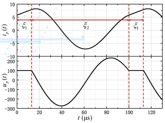 According to the calculated result of fixed point, for ξ1a = 13.09 μs, up = Edc and ip = 5.774A > 0 are both satisfied, which means the boundary β1 is meeting and this result ξ1a = 13.09 μs can be accepted. As for ξ1b = 36.71 μs, up = Edc is satisfied but ip = −2.927A < 0, which means the boundary β1 is not meeting and this result will be rejected.