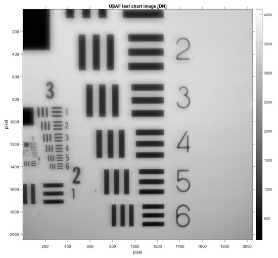 Figure 13 shows the results of acquiring a 2048 × 2048 image frame with the TuMag prototype laboratory camera. The USAF resolution test chart was used as a target.