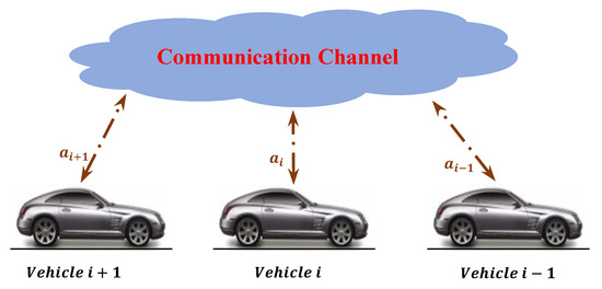 where i = { 1 , 2 , 3 , n } denotes the vehicle identification number, and x i ( t ) , v i ( t ) and a i ( t ) denote the position, velocity, and acceleration of the ith vehicle at time t, respectively.