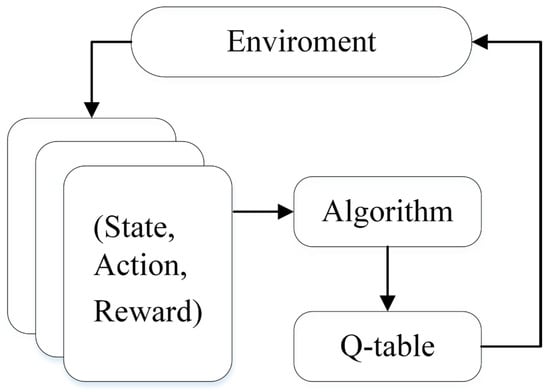 where α is the learning rate, is the immediate benefits, and γ is the discount (or attenuation) rate. The larger α is, the less the effect of retaining the previous training. And is the benefit in memory, and it refers to the maximum utility value in the action of the next state . The agent aims to obtain the maximum reward after choosing the action in the next state , so that the next time in state S, it can continue to get the reward by choosing the correct action. The larger the value of γ, the greater the role played by , i.e., the more attention is paid to past experiences. In contrast, the smaller the γ, the more attention is paid to the immediate benefits .