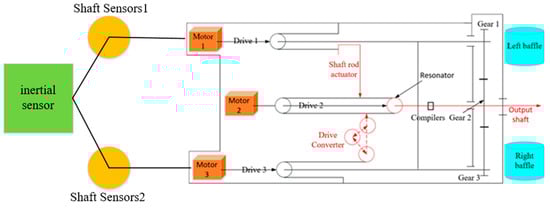The three-motor drive control designed in this paper includes two modes: common load and gap elimination. The performance of the three-motor servo-driven joints in eliminating backlash lies in the effective control of traditionally generated existential impedance forces. That is, a fixed torque is pre-added to the output shaft, which is finally transferred to the end-effector so that the instantaneous torque generated by the drive converter and the shaft actuator remains engaged with the wheel train. By driving the three drive motors in accordance with the three master wheels together to drive the slave wheels, the entire servo system is in two processes of starting or steering. Three servo motor outputs simultaneously output torque for also to the three gears linkage control, to ensure that the entire drive process is always in a backlash-free control state. The driving principle of the whole telescopic arm motion link is shown in Figure 2, and the structural parameters of the underwater telescopic arm robot are shown in Table 1.