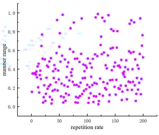 Given that the dung beetle algorithm may limit the trajectory optimum to certain limitations, it is not possible to take a global larger scale approach. Therefore, in this paper, we design an improved dung beetle algorithm to introduce Tent chaos into the dung beetle algorithm so as to realize the uniformity of the whole global search and speed up the search. Figure 7 shows the distribution of Tent’s chaotic sequences. The improved dung beetle algorithm designed in this paper fully utilizes Tent’s uniformly distributed chaotic sequences. An effective initiative to reduce the impact of local optimal bias surface optimization and enhance global optimization search to further reveal the efficiency of the improved dung beetle algorithm.