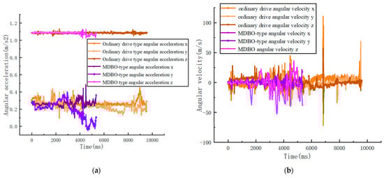 Comparison effect diagram of catching test. (a) angular acceleration; (b) angular velocity.