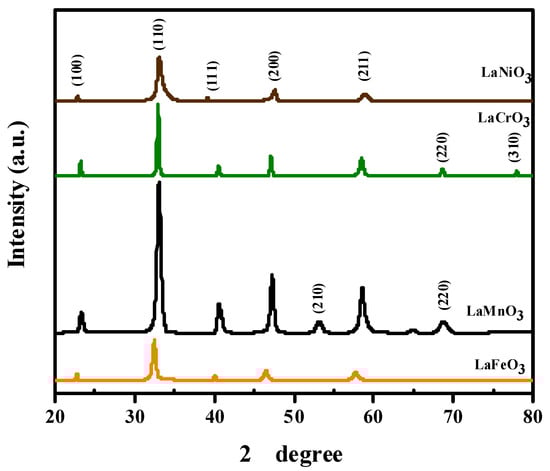 - Aljurays, R.; Loucif, A.; Amer, M.; Al-Mayouf, A.M. Preparation and Characterization of Lanthanum-Based Perovskite Oxides LaMO3 (M=Fe, Cr, Mn) Thin Films by Electrophoretic Deposition. Mater. Res. Express 2023, 10, 065902. [Google Scholar] [CrossRef]