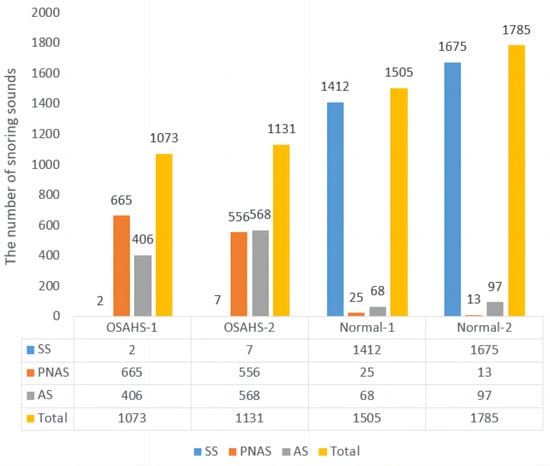 Ultimately, independent snoring sounds were randomly sampled from 30 h of sleep sounds recorded from individuals without sleep apnea, which were categorized as Apnea Snores (ASs). The three types of snoring events comprise the dataset needed for this study, as depicted in Figure 5.