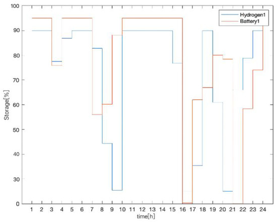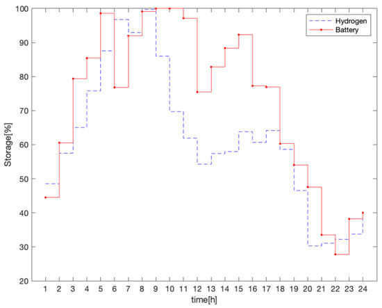 Hydrogen and battery energy storage for 24 h (without energy exchange).