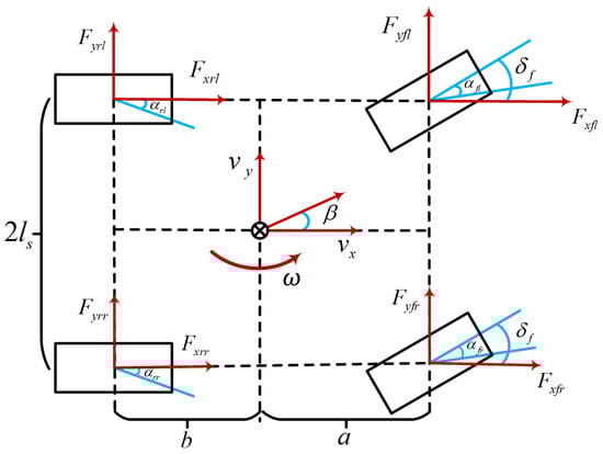 where , , , and are the longitudinal forces of the left front wheel, right front wheel, left rear wheel, and right rear wheel, respectively.