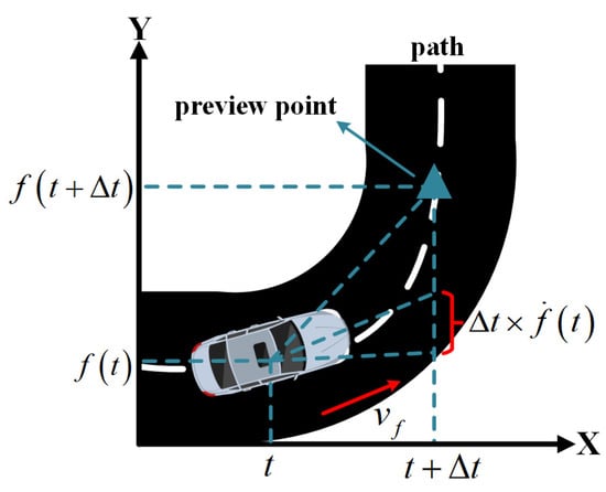 Since is very small and can be ignored in the actual calculation, the front wheel’s steering angle can be expressed as follows: