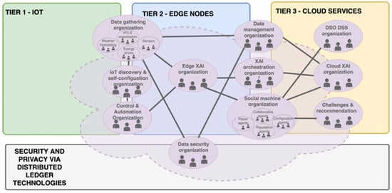 Due to the high complexity and interconnection of the system’s components, stringent requirements should be satisfied to achieve the optimal performance of the product. Therefore, multiple specifications at the different layers have been defined and are measured through specific indices that help in the assessment of the overall system. Figure 2 shows the proposed virtual organizations adapted to the 3-tier edge-computing architecture.