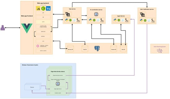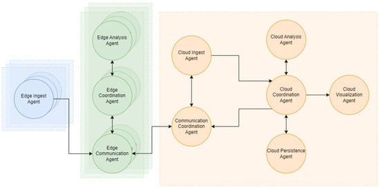 For a more detailed definition, the architecture has been defined in the field of multi-agent systems, as can be seen in Figure 4. The list of agents that make up this system can be traced to the services presented in previous sections and are also outlined below.
