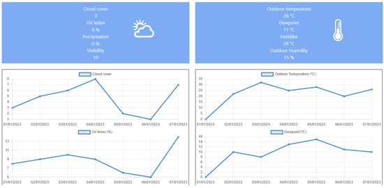 Five key components have been identified in the IoT layer that cover most of the building’s needs, namely, the total building smart meter energy consumption, the heating ventilation and air conditioning (HVAC) system, the lighting system, the electric vehicle (EV), and the water heater (Figure 1). Together, these can cover the largest part of the building’s energy consumption. Different synchronous and asynchronous data and metadata can be generated from these devices with different types and velocities. In addition, dealing with energy management in buildings requires knowledge of local weather conditions. Given that weather APIs serve this purpose with high accuracy, the system has been connected to a paid weather API which provides all the needed inputs.