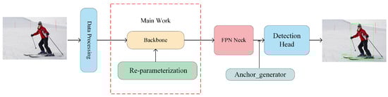 Structural reparameterisation is a network compression technique that reduces the number of network parameters by clustering the convolutional kernels in a convolutional neural network and merging similar convolutional kernels into a new one. To demonstrate that the structural reparameterisation technique can improve the accuracy and speed of the object detection task, we propose a novel algorithmic framework for the object detection task, as shown in Figure 1.