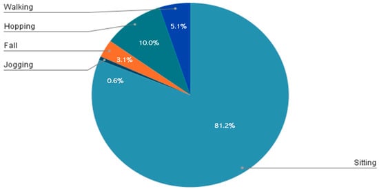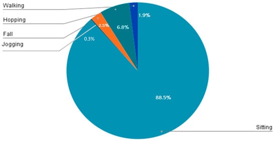 An example of the use of UMAFall comes from the study by Amara et al. []. In this paper, in addition to UMAFall, SisFall is also used, the latter being a dataset created with the participation of 38 volunteer subjects, divided into two groups based on age. The division of the data corresponds to 50% for training, 30% for validation, and 20% for testing. In pre-processing, however, a label is assigned to activities to identify whether they are Activities of Daily Living or falls. The classification is, therefore, binary, and the number of class instances is unbalanced. This class-unbalanced approach that results in binary classification is the only way UMAFall is used in studies purely related to Fall Detection. A confirmation of this statement can be found in the above-mentioned study by Cho et al. [], who also discuss the work using UniMiB SHAR, saying that precisely because of the binary classification there is no real guideline for analyzing the results of their experiment. This problem comes up again, unfortunately, when we analyze the performance of our models.