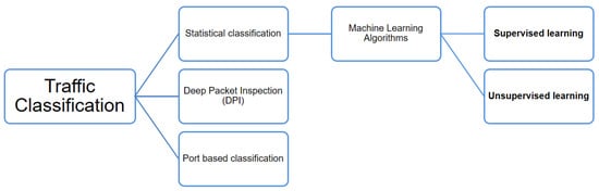 - Alzahrani, R.J.; Alzahrani, A. Survey of Traffic Classification Solution in IoT Networks. Int. J. Comput. Appl. 2021, 183, 37–45. [Google Scholar] [CrossRef]