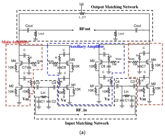 - Gupta, R.; Ballweber, B.; Allstot, D. Design and optimization of CMOS RF power amplifiers. IEEE J. Solid-State Circuits 2001, 36, 166–175. [Google Scholar] [CrossRef]