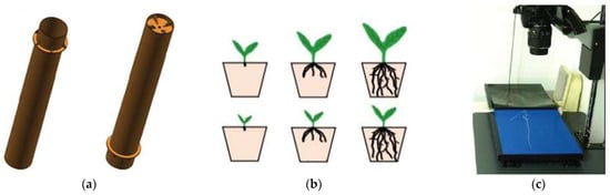 The study of plant root morphological parameters has attracted wide attention in the study of ecosystem and climate change [36]. The morphological parameters of plants’ roots mainly include topological structure, length, root length and density, root torsion degree, root growth angle, root tip number, etc. Due to underground growing and complicated distribution, gathering the information of a plant’s roots is very hard [37].