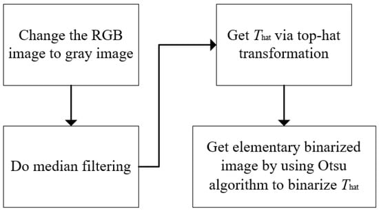 where h is the height of image and is the width. After obtaining the top-hat transformed image , we use Otsu algorithm to perform preliminary binarization processing on the image . The pre-processing flowchart is shown in Figure 3.