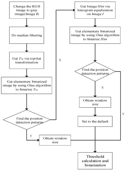 - Zhang, W.; Yang, T. An Improved Algorithm for QR Code Image Binarization. In Proceedings of the 2014 International Conference on Virtual Reality and Visualization, Shenyang, China, 30–31 August 2014; IEEE: Piscataway, NJ, USA, 2014; pp. 154–159. [Google Scholar]
