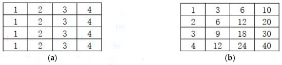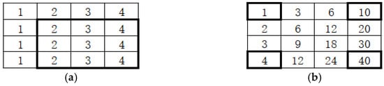 Suppose there is an image A, the gray values of its image pixels are shown in Figure 12a, and the corresponding integral image is shown in Figure 12b.