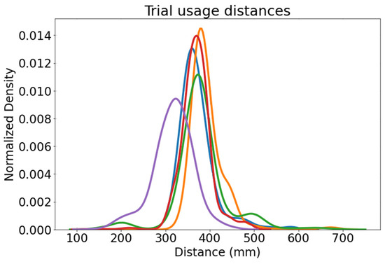Evaluation of arm tracking using simple infrared markers, showing distribution for clinical operating distances from HoloLens 2 depth camera to patient’s arm, across multiple recordings.