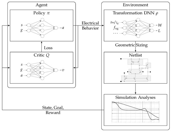 - Zhao, Z.; Zhang, L. Deep Reinforcement Learning for Analog Circuit Sizing. In Proceedings of the 2020 IEEE International Symposium on Circuits and Systems (ISCAS), Seville, Spain, 12–14 October 2020; pp. 1–5. [Google Scholar] [CrossRef]
