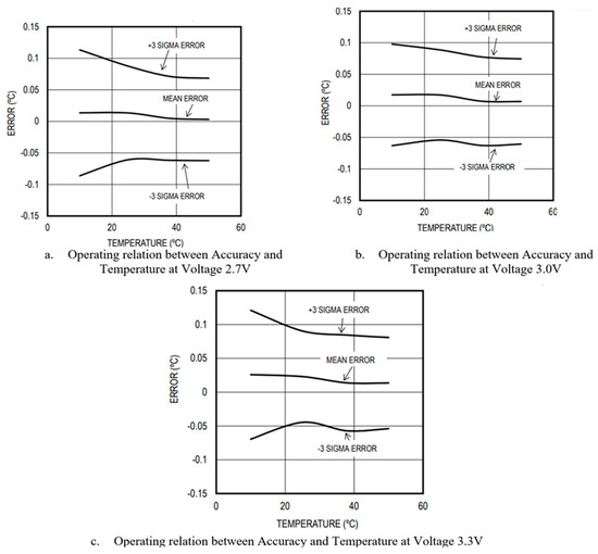 The accuracy is calculated using the sensor’s value and the actual value of the body temperature. The accuracy is defined as the amount of measurement of uncertainty concerning the absolute value. Here, accuracy conditions consist of the effect of errors due to balancing and gaining parameters. The accuracy of the system is evaluated using (1):