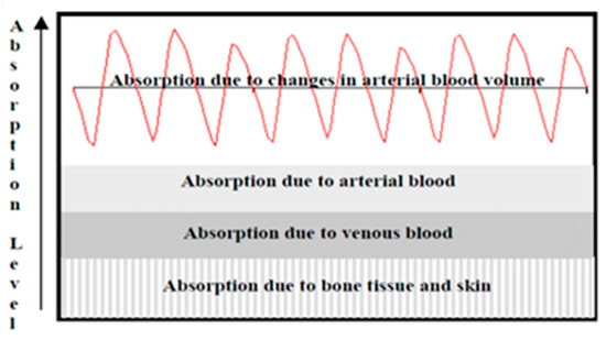 In Figure 7a–c, the sigma error presents a value to quantify the variation in the dataset representing the relationship between accuracy and temperature and 3-sigma defines upper and lower control limits within three deviations from the mean. The PC-3147 heart rate sensor is deployed for collecting the data. It measures the pulse rate ranging from 0 to 200 bpm with a resolution of 1 bpm. This sensor transmits the light level through the vascular tissues in the ear lobe or fingertips. It measures the variation in the intensity of light absorbed in the blood due to changes in tissues. Figure 8 presents the sensor’s real-time data on ten days ranging from 12 December to 21 December at around 1:35 PM daily. The data collected are vast. Figure 9 presents the light-absorbing property of hemoglobin for measuring the heart rate.