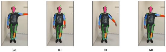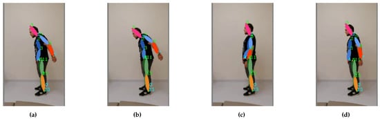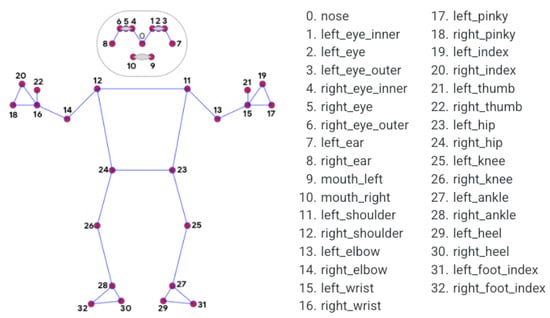 A semantic connection is formed between the keypoints of the body and declares the order in which the recorded points must connect; that is, point “0” of the head cannot connect to point “11” on the left side of the hip joint.