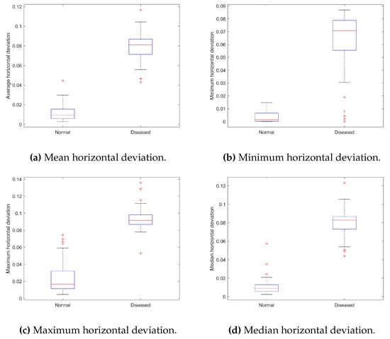 A random forest (RF) consists of individual decision trees (DTs) that can be trained sequentially or simultaneously with a random sample of data [52]. In each tree, all nodes have defined conditions that specify the properties by which the data are broken down into two separate sets. Examining the recorded signals (angles of motion) of a healthy person can show significant differences compared to a person with a movement disorder.