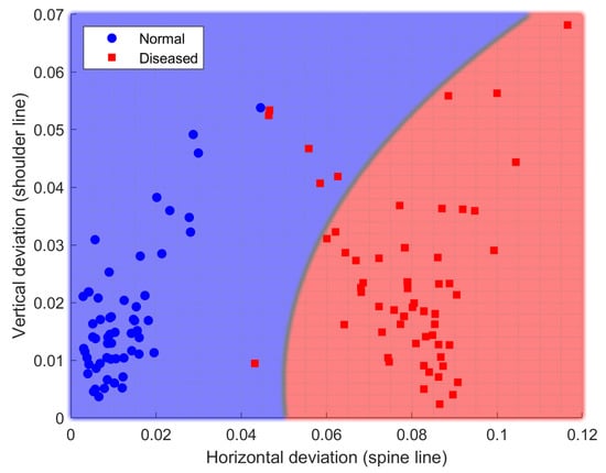 Various classification and prediction methods can be used for health assessment and can identify possible pathologies from digital images, biological or motion signals, survey data, etc. [49,50]. Machine learning (ML) involves the use of advanced statistical and probabilistic methods in the construction of systems that can automatically learn from the data provided. Because ML algorithms perform fast and high-quality analysis of complex data, they are extremely popular in the study of various health disorders to improve the patient’s condition and to increase the understanding of the patient’s physiological condition and its control [51]. Depending on the amount of data or the information available on the data sample itself, an algorithm category or several algorithms shall be selected for the study. After testing, the model that best describes the data is selected.
