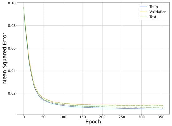 The data set of the experiments was split into three sets: the training set (1350 groups, 60%), the validation set (450 groups, 20%), and the test set (450 groups, 20%). The training set was only employed for the training model parameters; the validation set was not involved in training, and was used to determine network hyperparameters, such as adjusting the topology of the network, adjusting the learning rate, number of training sessions, and judging whether or not it has been over-fitted. The test set was not involved in training, but only utilized to test the generalization of the target model.