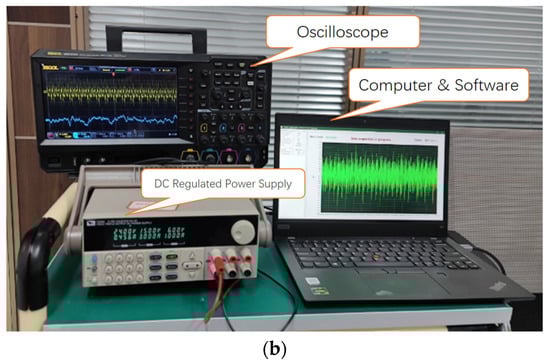 The diesel engine in Figure 17a is undergoing reliability tests. We installed an acceleration sensor on the cylinder head to monitor the valve clearance failure. Figure 17b shows the experimental equipment and software.