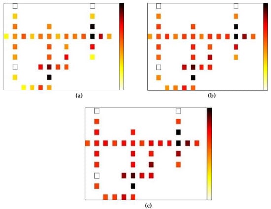 Energy dissipation map of the memory cell at (a) 0.5, (b) 1.0, and (c) 1.5 Ek levels.