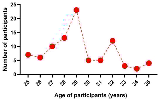This graph shows the number of participants and their ages.
