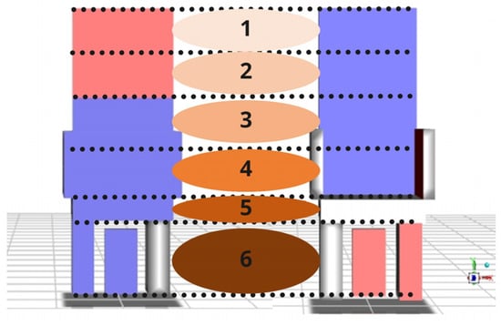 Current air conditioning in airplanes is a convection system, which flows from top to bottom and maintains a constant temperature at all seasons [16,17]. In addition, small nozzles are installed above passengers’ heads as personal air conditioning. However, the nozzles cannot control the temperature; they can only adjust the air volume. This kind of nozzle is believed to have low effectiveness in winter [5,18,19]. In other words, the current air conditioning in airplanes is inadequate for adjusting to individual passengers, and there is room for improvement. There are recent efforts to provide personal air-conditioning systems on the flights [20,21,22]. It focuses on body partial air conditioning, such as for legs and elbows. Furthermore, the thermal sensation differs from each part of the body, thus it must be taken into account for air conditioning control [23]. In other words, partial air conditioning is not sufficient to control the entire body. Hence, the objective of this study is to focus on providing suitable temperatures, positively affecting all body parts. In fact, it is believed that a seat-type air conditioner can effectively provide airflow directly to the human body [24,25,26,27]. Thus, in the previous study [10], a seat-type air conditioning system was introduced. It consists of six air conditioning outlets per seat to provide the appropriate temperature for each body part (as shown in Figure 1 and Figure 2). A previous study conducted validation experiments using computational fluid dynamics (CFD) simulations to investigate appropriate temperature settings using the proposed air conditioning. For this, an ideal temperature distribution around the human body was defined based on references [28]. Table 1 shows the optimum operative temperature around the human body defined as the ideal temperature distribution [28]. Then, the temperature settings of each air conditioning outlet were investigated to achieve the ideal temperature distribution around the human body. As a result, the optimum temperature settings of the air conditioning were found as shown in Table 2. It also clarified which part of the body is affected by which air conditioning outlets. However, individual characteristics were not taken into account, and the experimental results were obtained from simulation solely. One of the key things deduced from previous study is that it is also possible to classify the thermal sensations based on thermal sensitivity characteristics, although it is difficult to classify the thermal sensations based on age and gender [29,30].