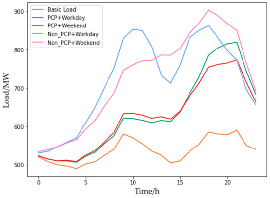 The charging peak effect is evident, no matter on the weekday or weekend. The different charging patterns for weekdays and weekends among users with PCPs and users without PCPs were identified. For users with PCPs, the charging peak appears at night from 20:00 to 21:00. While for the users without PCPs, on the weekday, there are two charging peaks in public charging piles; one is at 10:00–11:00 and the other is at 17:00–18:00. However, at the weekend, the peak appears at 19:00–20:00. In addition to comparing the charging differences in different user groups, we superimposed the charging load curve of the BEVs with the base load curve and found a very obvious peak addition situation. This will lead to potential high negative influence on the power load to grid. Therefore, the orderly charging based on peak–valley price differences will be the key factor to change the user’s charging behavior.
