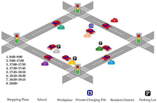 In addition to charging in fixed residential areas, users with PCPs also charge in public places, like users without PCPs. It can be found that users are not completely dependent on PCPs. When the SOC level is low or the user’s willingness to charge is strong, the user with PCPs will also choose to charge in public places.