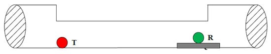 T refers to the transmitting equipment, i.e., the sound source, which included a signal generator, signal amplification circuit, and piezoelectric transducer. R represents the signal-receiving equipment, which included a receiving antenna and signal amplification circuit.