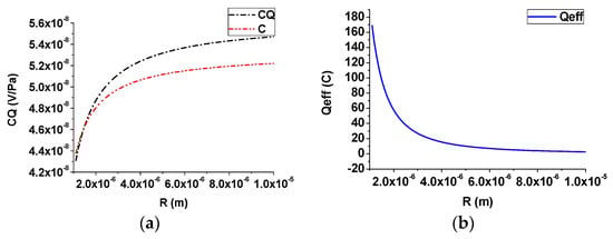 Effect of the pore size (steady case): (a) streaming potential coupling coefficient; (b) effective net residual charge density.